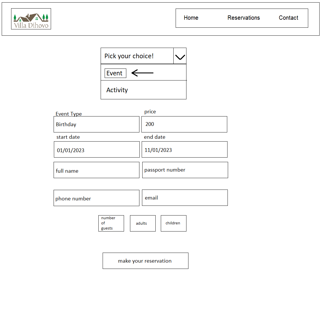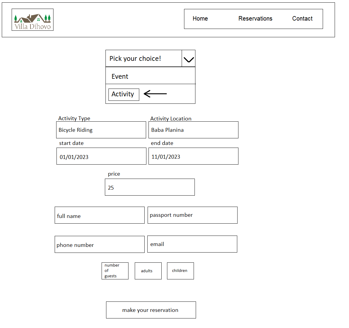 Чекор 7: Најавениот корисник ги пополнува полињата на формата за резервација со свои лични податоци