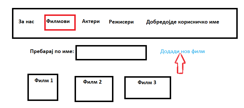 Чекор 1. Корисник одбира да додаде нов филм, актер или режисер.