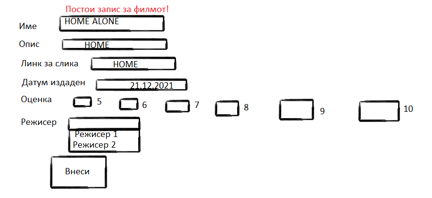 - Во зависност дали корисникот има внесено режисер и оцена за истиот филм, еден од горните 4 прашалници ќе биде испратен до база.