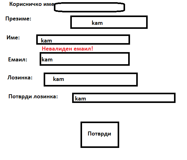 Чекор 5. Доколку внесените податоци од претходниот чекор не се успешно валидирани, корисникот не е регистриран и се појавува приказ на соодветната грешка.