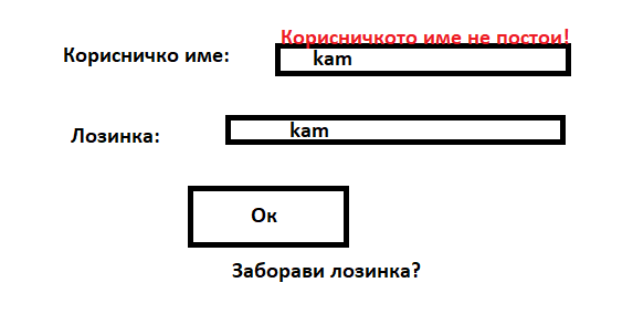 Чекор 4. Доколку внесените податоци од претходниот чекор не се успешно валидирани, корисникот не е најавен и се појавува приказ на соодветната грешка.