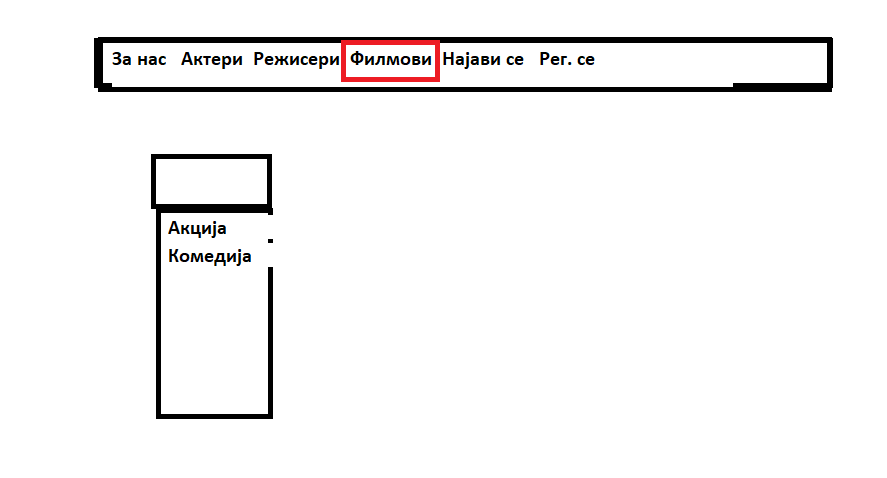 Чекор 1. Корисник одбира жанр од листа по кој сака да ги филтрира филмовите, актерите или режисерите.