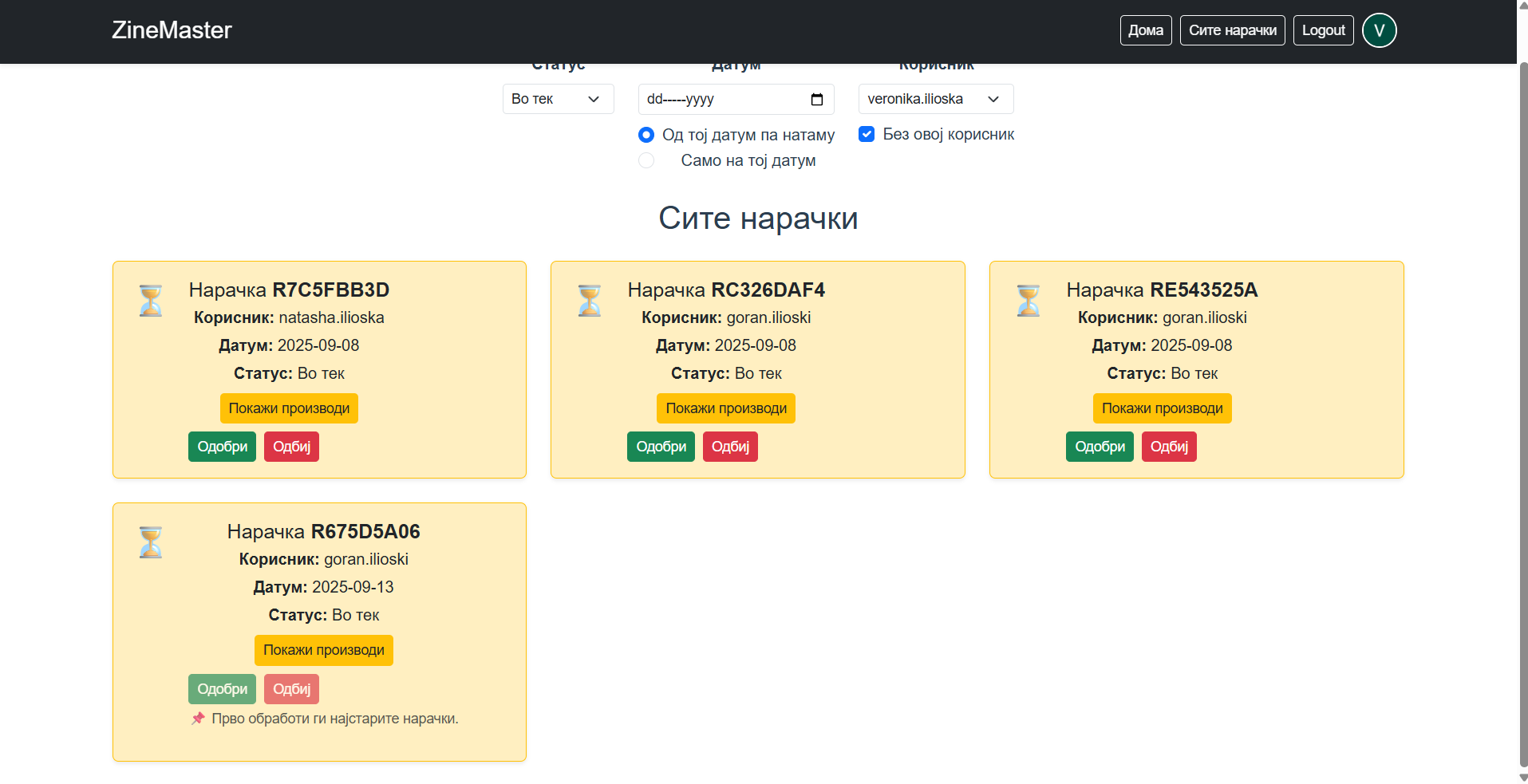ИД Х - Администраторот на производи мора да ги процесира прво најстарите нарачки
